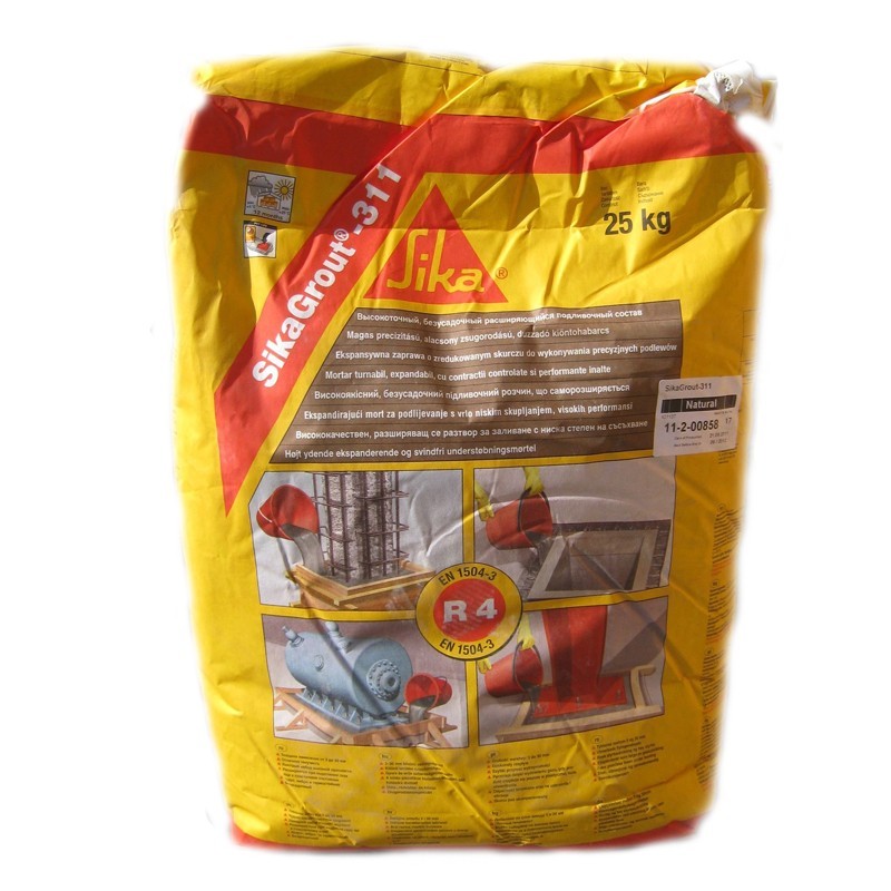 SikaGrout® -311 este un mortar fluid pentru turnari, expandabil, cu contractii reduse, monocomponent pe baza de ciment, gata de amestecare.